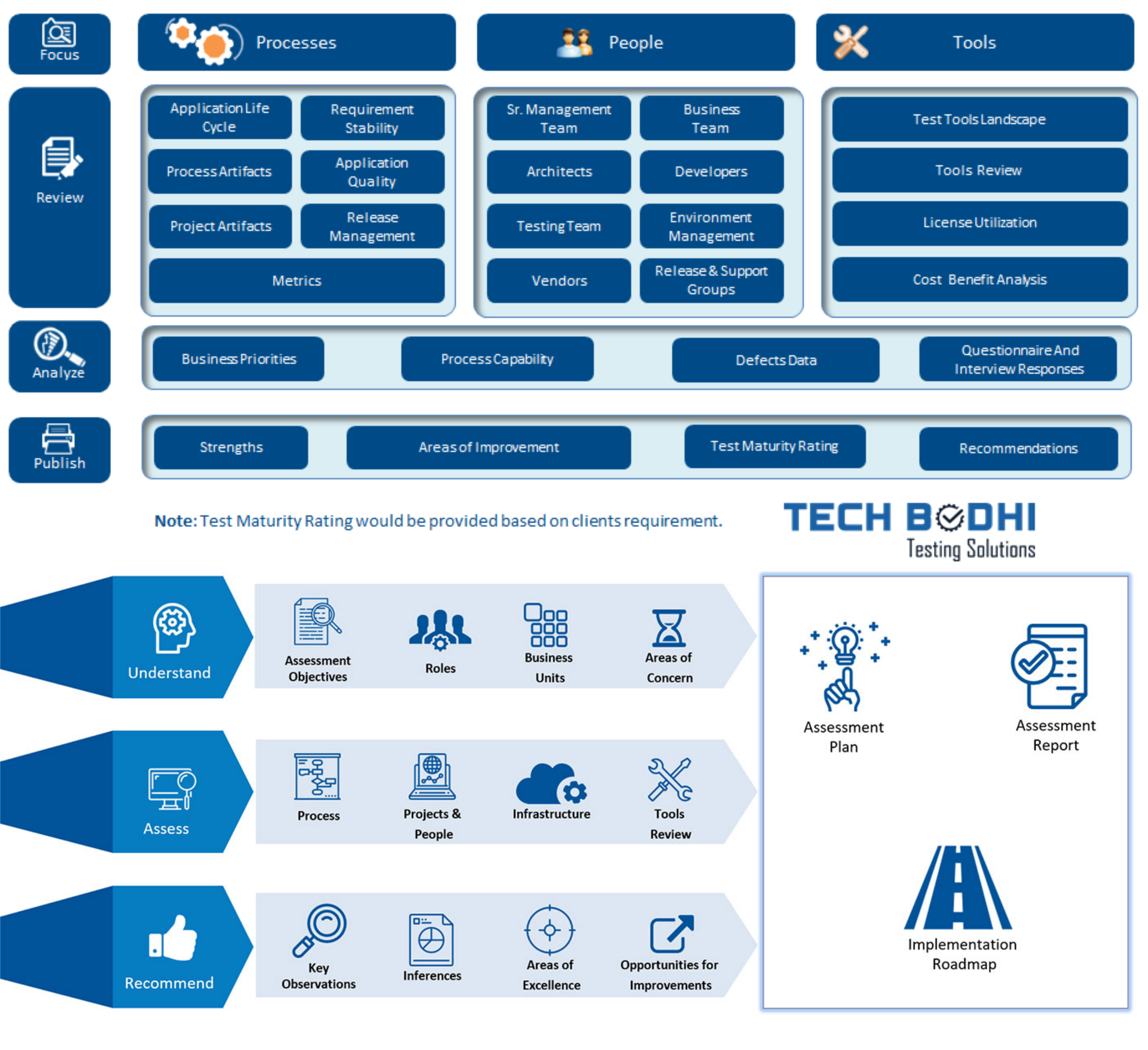 TMoksha has a defined phased wise approach: Understand, Assess & Reccomend. TMoksha’s demarcated approach to assessment starts with understanding what is working well and what needs refinement. Project lifecycle methodologies, associated artifacts, Process effectiveness is understood by reviewing the implementation in sample projects.